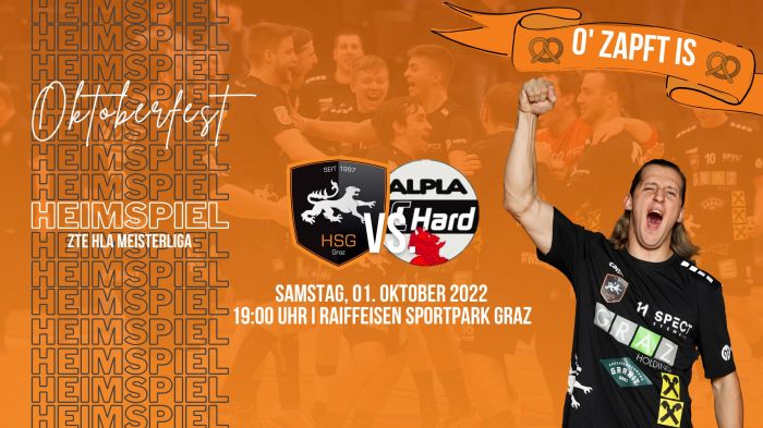 Am Samstag gastiert der ALPLA HC Hard im Raiffeisen Sportpark Graz. Nach dem Auswärtssieg gegen Sparkasse Schwaz Handball Tirol will das Team an die starke Leistung anschließen und gegen die European League Starter groß aufzeigen. Im Anschluss an das Spiel lädt das Team zum HSG Holding Graz Oktoberfest.