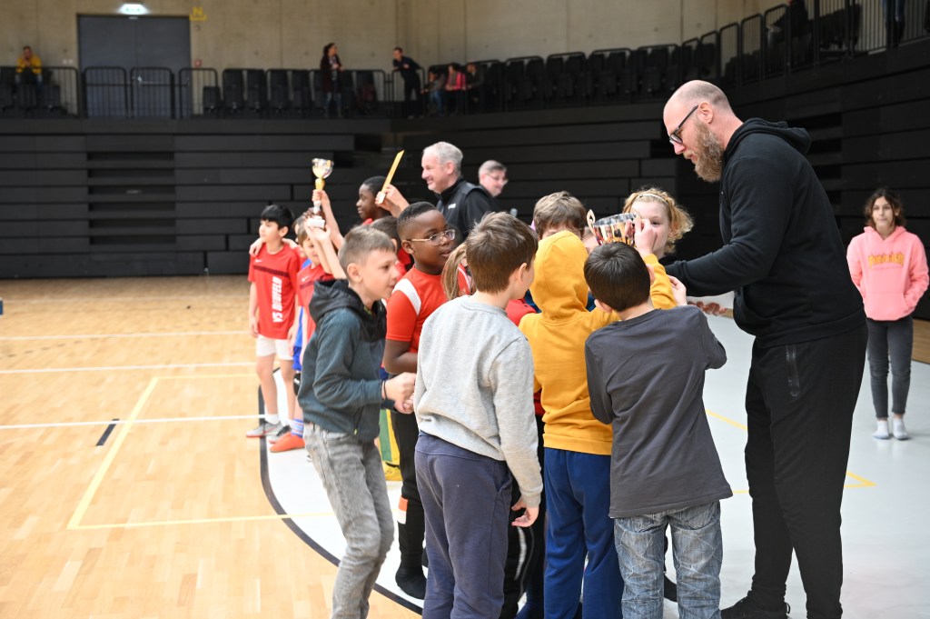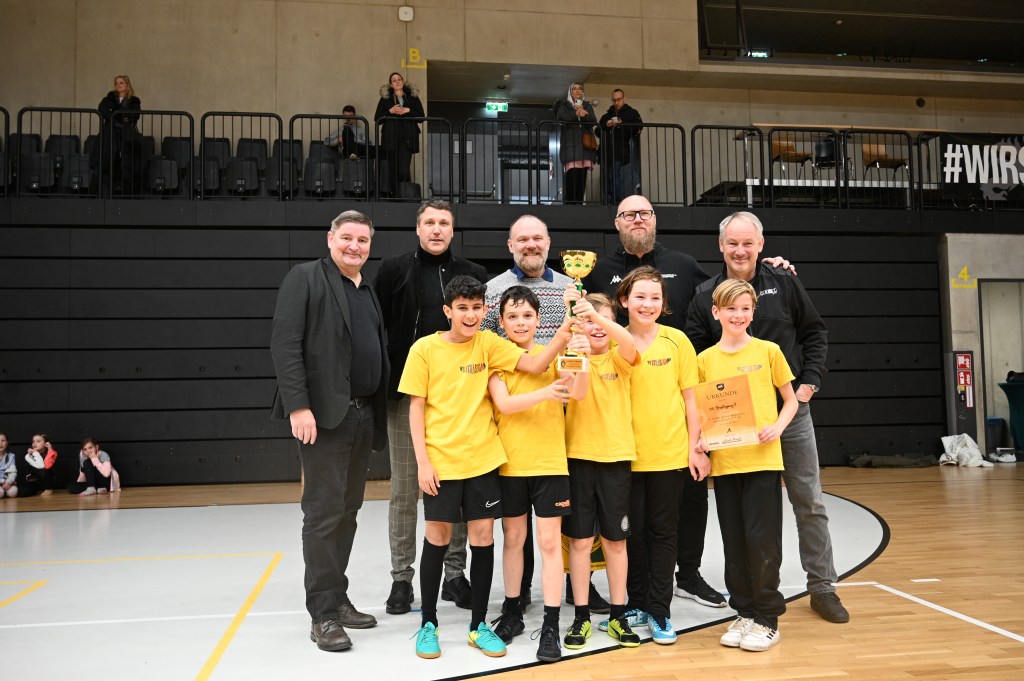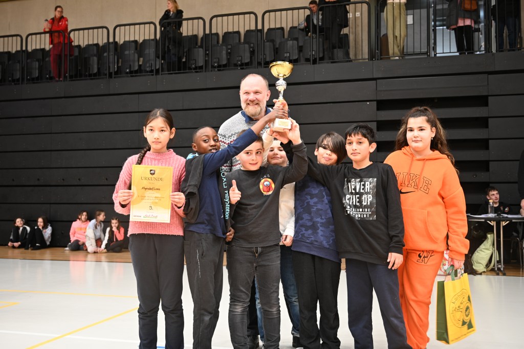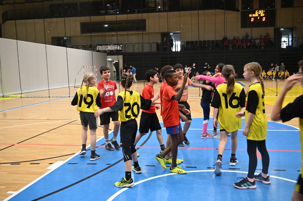 Nach Eröffnungsworten von Stadtrat Kurt Hohensinner ging es direkt in die Spiele, in denen die Volksschüler:innen aufeinander trafen. Den Titel holte sich die Volksschule Straßgang, die sich im Finale gegen die VS Gabelsberger durchsetzte, Platz drei ging an die VS Algersdorf. Kurz vor dem Finale schaute auch Nationalteamtrainer Ales Pajovic vorbei, der den Kids ein wenig über die Schultern schaute.