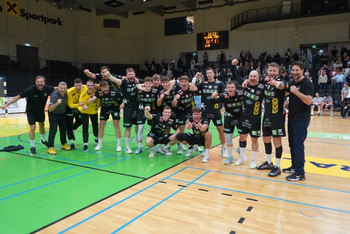 Die HSG Holding Graz gewinnt das Heimspiel gegen Sparkasse Schwaz Handball Tirol 32:31. Ein Save in der letzten Sekunde durch Thomas Eichberger besiegelt den Heimerfolg. Trotz verspäteter Anreise finden die Gäste aus Tirol besser in die Partie und bringen sich in den ersten 15 Spielminuten mit 8:5 in Führung. Eine doppelte Unterzahl nach 22 Spielminuten … Weiterlesen 32:31-Erfolg über Sparkasse Schwaz Handball Tirol