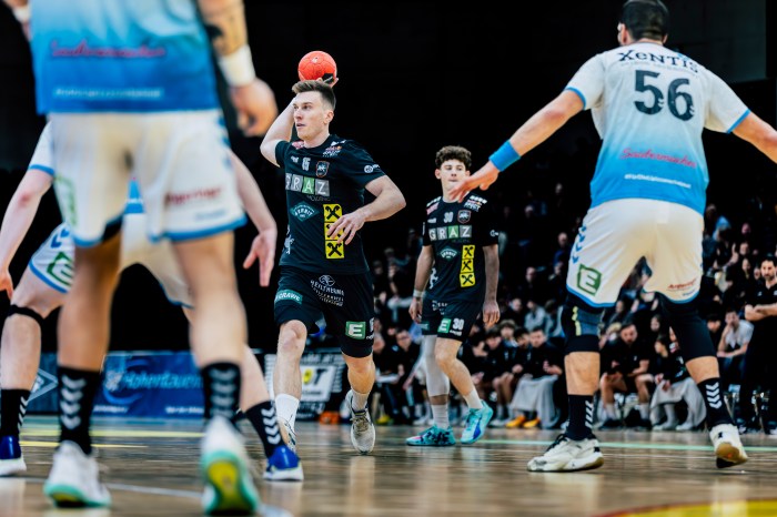 Derbysieg im vorletzten Heimspiel der Saison. Die HSG Holding Graz gewinnt das Derby gegen die HSG Xentis Lipizzanerheimat 28:25. Allen voran Leonhard Schweighofer kontrollierte das Spiel auf der Mitte-Position und zauberte neben sieben Treffern auch mit fünf Assists. Nachdem 0:1 durch Domen Knez nehmen die Grazer schnell das Spiel in die Hand und bringen sich … Weiterlesen Schweighofer-Festspiele bringen Derbyheimsieg
